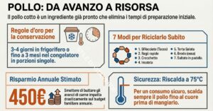 Applicare anche solo 2-3 delle ricette di questa guida con regolarità può azzerare completamente lo spreco e alleggerire la spesa settimanale senza cambiare il modo in cui cucini il pollo la prima volta.