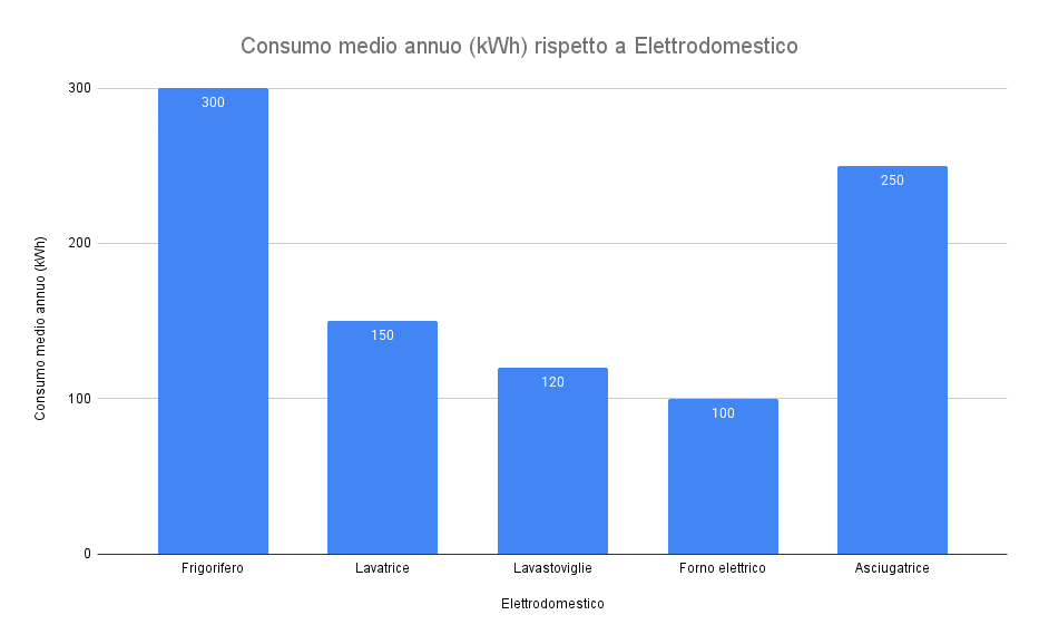 Consumo medio annuo degli elettrodomestici più comuni